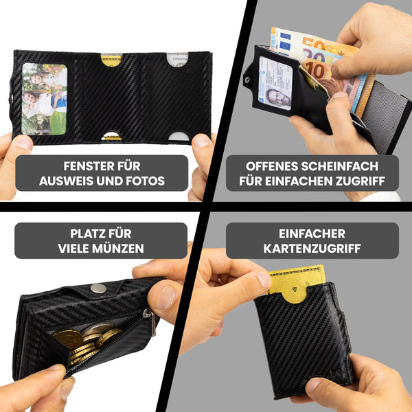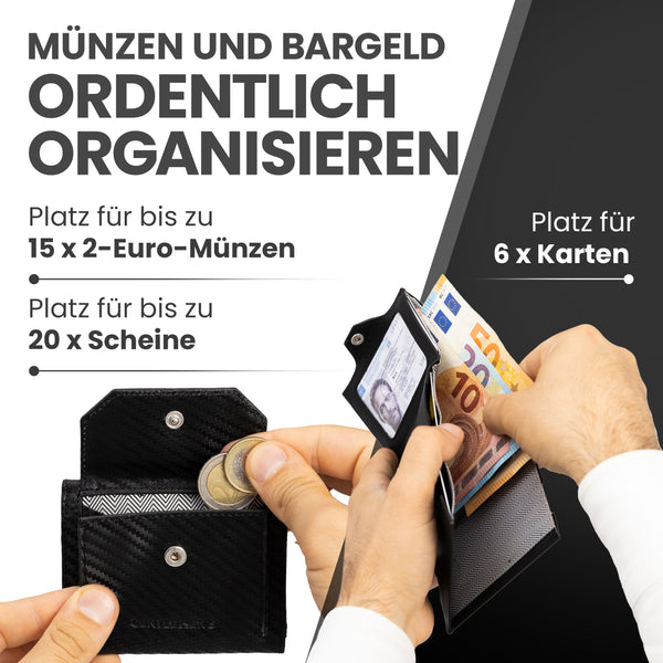 Perfekte Organisation: Platz für bis zu 6 Karten, Scheine und ein separates Münzfach – strukturiert, übersichtlich und immer griffbereit.